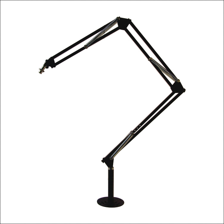 El brazo S57 es un soporte para microfono de todo tipo, ya sea con o sin montura. Su particularidad es que posee 3 articulaciones. Esto le permite extenderse de manera comoda y sencilla. Alcanza una extensión total de 1,20m. Esto lo hace capaz de funcionar por encima de un monitor o una consola de radio. Es recomendable para locutores operadores o mesas de radio grandes.